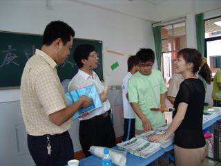 本屆“校園開放日”前夕,中文系作好了充分而完善的準(zhǔn)備,以剛剛成立的系學(xué)生會成員為骨干和主力軍,有條不紊地完成了宣傳冊的設(shè)計、宣傳片的拍攝等難度較大的復(fù)雜工作,獲得了老師和家長們的廣泛好評。6月18日全天,志愿者們到處積極地散發(fā)宣傳冊,熱情而耐心地給家長和考生介紹中文系的專業(yè)特色和學(xué)習(xí)生活情況。