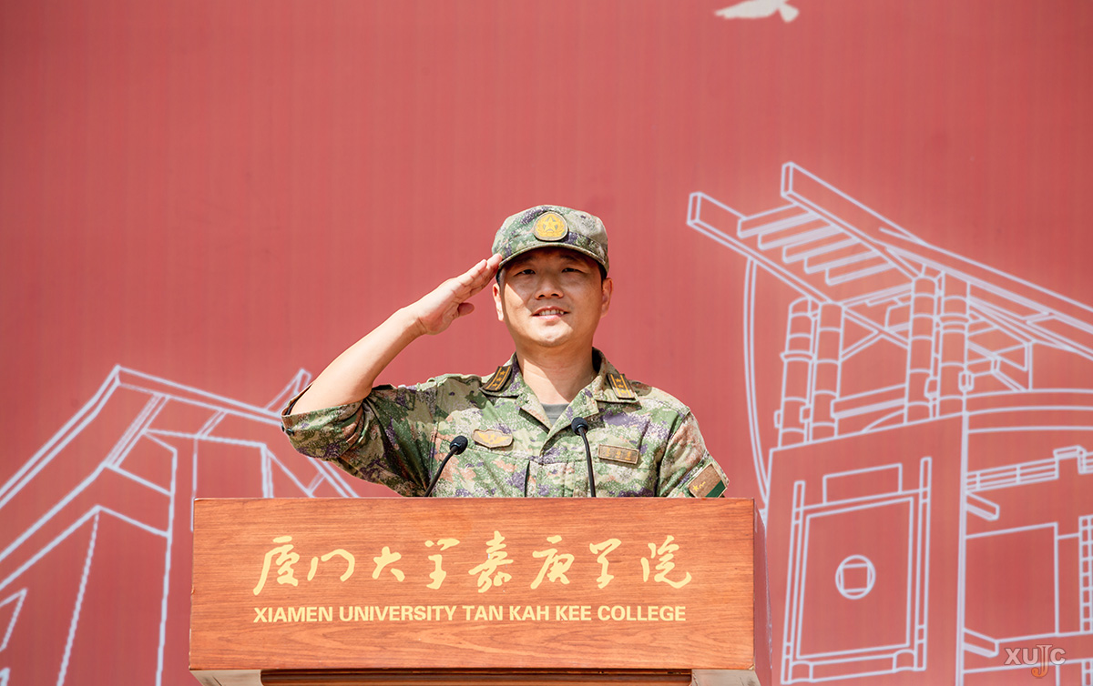 承訓(xùn)部隊(duì)首長夏海勇在軍訓(xùn)動員大會上說明了大學(xué)生參加國防軍訓(xùn)的重要性,并強(qiáng)調(diào)軍訓(xùn)能培養(yǎng)同學(xué)們的紀(jì)律意識和團(tuán)隊(duì)協(xié)作精神。他表示,14天的軍訓(xùn)難能可貴,相信同學(xué)們一定能夠挑戰(zhàn)自我,超越自我,全面展示嘉庚學(xué)子的精神風(fēng)貌,以優(yōu)異的成績交出入學(xué)后的第一張成績單。