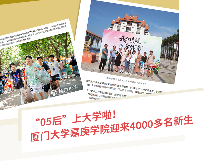 時(shí)光無(wú)涯,青春有“嘉”。招生/迎新,橫貫夏秋的重要“嘉”事之一,每每都能獲得社會(huì)媒體記者們的特別關(guān)注。從招生計(jì)劃到招生宣傳片發(fā)布,從迎新現(xiàn)場(chǎng)直擊到新生特寫(xiě),全國(guó)范圍的多家主流媒體展畫(huà)面、講故事、分析變化,一路相隨,陪“嘉”迎接又一屆青春“嘉”人。