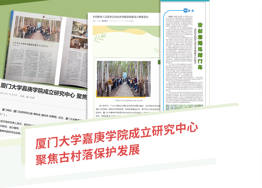 2023年4月28日,我校設(shè)計(jì)與創(chuàng)意學(xué)院揭牌成立“閩臺(tái)鄉(xiāng)村設(shè)計(jì)與創(chuàng)意研究中心”,旨在圍繞“學(xué)術(shù)研究、設(shè)計(jì)服務(wù)、閩臺(tái)交流、鄉(xiāng)村運(yùn)營(yíng)”四大板塊開(kāi)展工作,推進(jìn)鄉(xiāng)村人才、文化、產(chǎn)業(yè)協(xié)同振興。閩南日?qǐng)?bào)、廈門日?qǐng)?bào)等媒體積極關(guān)注并報(bào)道,《福建青年》雜志(2023年4月號(hào))則以《鄉(xiāng)村振興|以藝術(shù)之力為鄉(xiāng)村旅游發(fā)展注入青春活力》進(jìn)一步開(kāi)展專題、深度報(bào)道,講述我校聚焦鄉(xiāng)村文化振興,組織師生以社會(huì)實(shí)踐的方式,傳承弘揚(yáng)鄉(xiāng)土文化,助力鄉(xiāng)村旅游發(fā)展的故事。