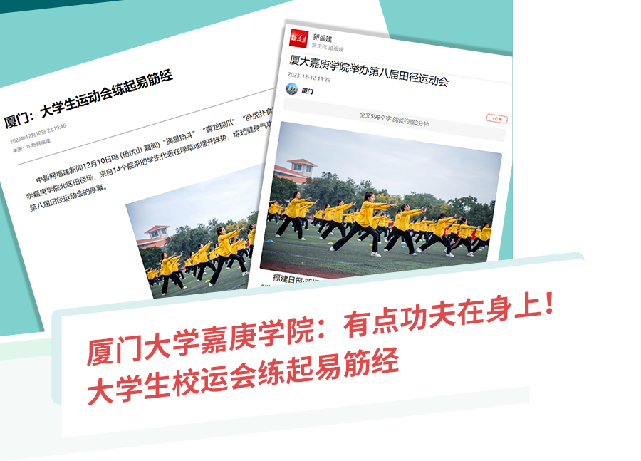 2023年12月9日,為期1.5天的我校第八屆田徑運(yùn)動(dòng)會(huì)“活”力全開(kāi),激揚(yáng)青春。開(kāi)幕式上,來(lái)自全校14個(gè)院系的學(xué)生代表帶來(lái)了健身氣功易筋經(jīng)表演和武術(shù)展示,復(fù)古又酷炫的現(xiàn)場(chǎng)迅速吸引社會(huì)媒體目光,并獲多視角圖、文、視頻報(bào)道。