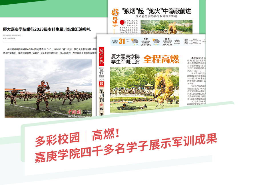 2023年8月27日至9月16日,我校4000多名本科新生歷經(jīng)21天每天8小時(shí)的艱苦訓(xùn)練并交上完美答卷。青春淬“火”,韶華如“花”綻放!全國(guó)多家主流媒體亦不吝報(bào)道、點(diǎn)贊:“全程高燃”“穿云裂石”“震撼指數(shù)爆表”……
