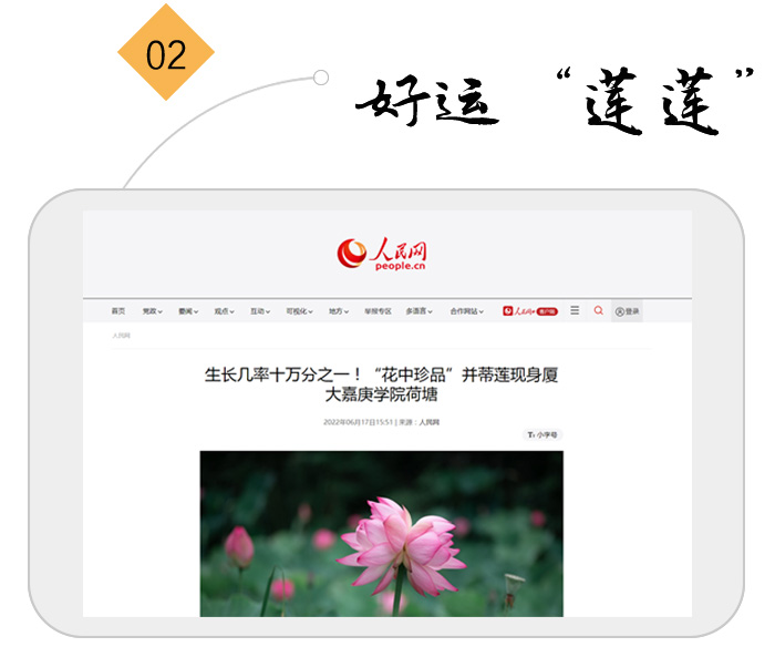 ![]() 時光里所有溫柔事物,都會如期而至,比如夏荷,以及荷中極品——并蒂蓮!2022年的燃情盛夏,我校一雙并蒂蓮火爆全網(wǎng),人民網(wǎng)、中國新聞網(wǎng)等主流媒體紛紛報道,以此與全世界分享“嘉”字號的美好與幸運。