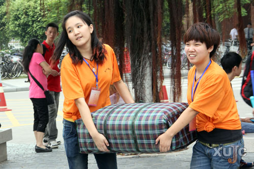 杜輝是這屆院學(xué)生會女生部的副部長。這次的迎新工作中,她負(fù)責(zé)北區(qū)食堂的招待工作。“我的工作就是在食堂教新生、家長如何往飯卡里充錢,如何買菜刷飯,幫助解答任何問題。”忙著帶新生去打飯的杜輝邁著急匆匆的腳步,在人潮中幾進(jìn)幾出。這幾天雖然是陰天,溫度已有所下降,但是杜輝汗水直滴。她顧不上休息,又向前面滿臉疑惑的新生走了過去。“嘉庚學(xué)院的學(xué)生很真誠,很有耐心。”來自福州的新生家長陳女士不由地夸贊道。