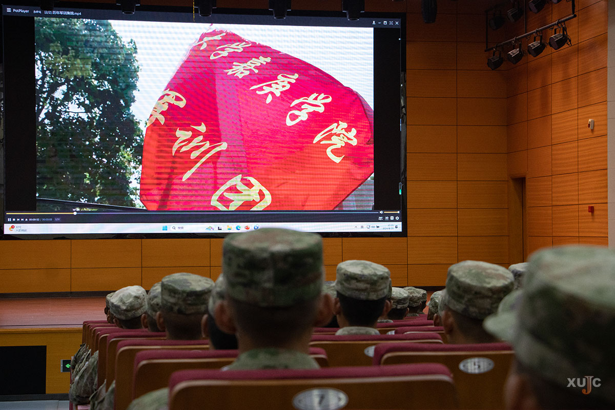 與會人員通過一段視頻共同回顧我校歷年軍訓(xùn)情況。那一抹抹鮮艷的“迷彩綠”,在每年金秋的陽光下熠熠生輝,成為“嘉園”最耀眼的風(fēng)景線。