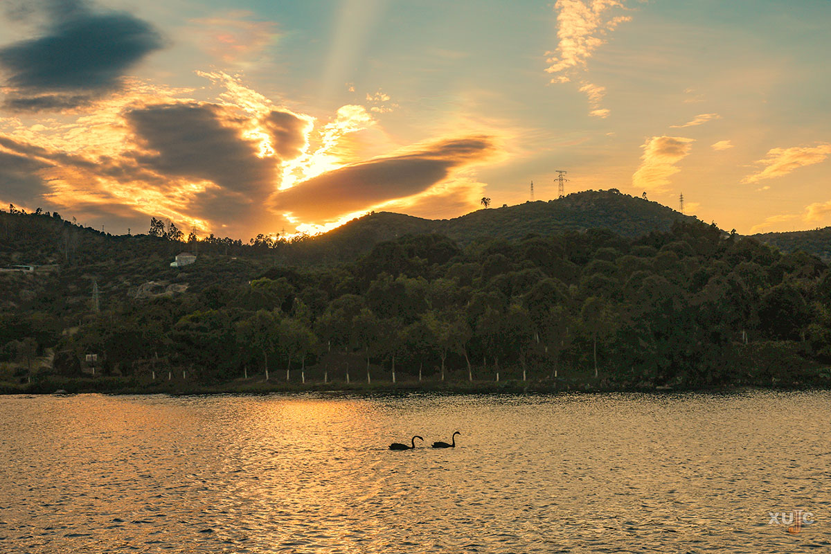 天鵝輕盈乘著晚風(fēng)找尋歸家的路