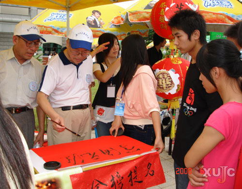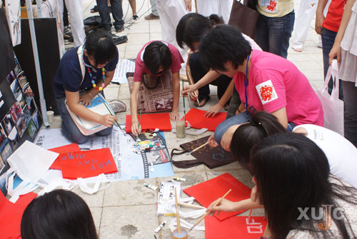 最精彩最熱鬧的活動要數(shù)社團的表演賽了,日語協(xié)會表演的和服秀吸引了全場的目光,贏得了大家熱烈的掌聲。廣告?zhèn)髅綄W社特地針對“限塑令”策劃了一個“環(huán)保購物袋涂鴉”活動,考生和家長可以在環(huán)保袋上自由地描畫自己喜愛的圖案。一位剛參加完高考的理科考生很開心,她在環(huán)保袋上畫了四葉草,又畫上了彩虹,她說之所以畫上這個圖案是希望實現(xiàn)自己的心愿:“希望自己這次高考可以比較順利,上本二線,就可以報嘉庚學院了!”。