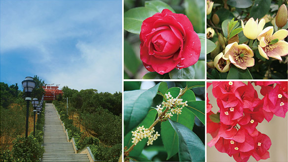 這條步道連通了教學(xué)區(qū)與生活區(qū),集游玩、休閑、學(xué)習(xí)、健身為一體。步道兩旁種滿桂花、茶花、含笑、三角梅等植物。站在山頂?shù)耐ぷ永?,不僅可俯瞰校園景致,還可遠(yuǎn)眺大海。