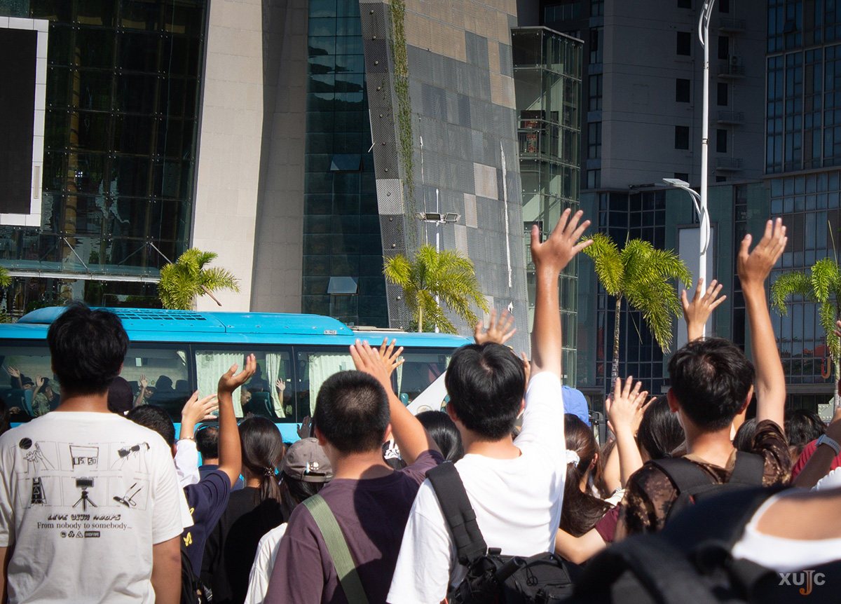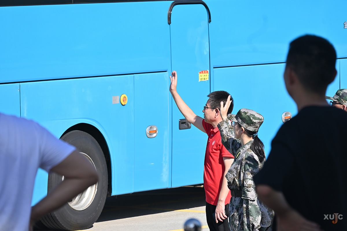 大巴車緩緩開動,新生們靜靜地佇立在原地,目送著車漸行漸遠。