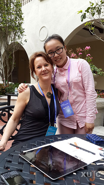 在雙魚島論壇上,張馨(右)與外國嘉賓合影