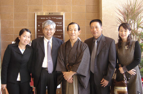 我院訪問團一行與日本長崎國際大學理事長安部直樹先生、我院赴日留學交換生“第一人”林藝華合影 |