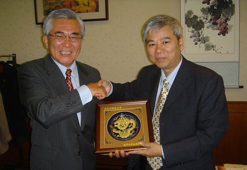 我院王瑞芳院長向日本長崎外國語大學校長池田?一贈送禮物 |