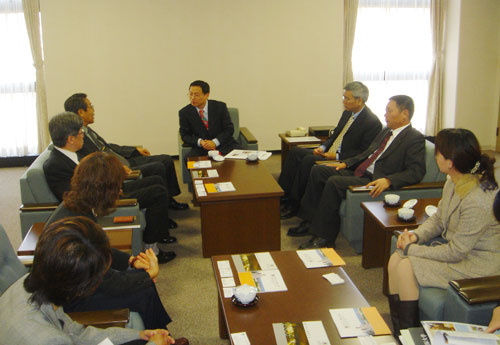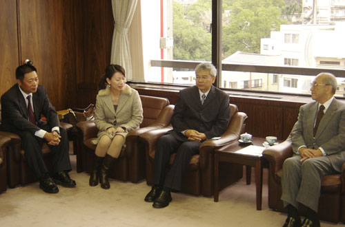 我院院長王瑞芳、副院長李初環(huán)、日語系主任余逸文與日本佐世保市市長光武顯親切座談 |
