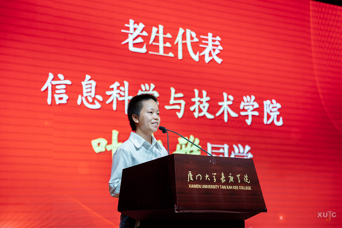 “以??频牡鬃樱婺芨媳究频墓?jié)奏嗎?”對(duì)于這個(gè)新生們最關(guān)注的問(wèn)題,信息科學(xué)與技術(shù)學(xué)院2024級(jí)學(xué)生代表葉文雅用自己一年的經(jīng)歷告訴大家:“真的可以。”經(jīng)過(guò)一學(xué)期努力,她收獲了校一等獎(jiǎng)學(xué)金。她鼓勵(lì)新生擁抱廣闊平臺(tái):主動(dòng)利用本科階段豐富的學(xué)術(shù)與科研資源,善用教師答疑和自由旁聽(tīng)制度夯實(shí)專業(yè)基礎(chǔ);善用智能工具但保持獨(dú)立思考,避免陷入“信息繭房”;擁抱多元體驗(yàn),通過(guò)實(shí)踐活動(dòng)拓寬視野、錘煉能力,結(jié)識(shí)志同道合的伙伴。她祝愿大家堅(jiān)定初心、屏蔽雜音,以“日日新”的態(tài)度不斷自我超越。