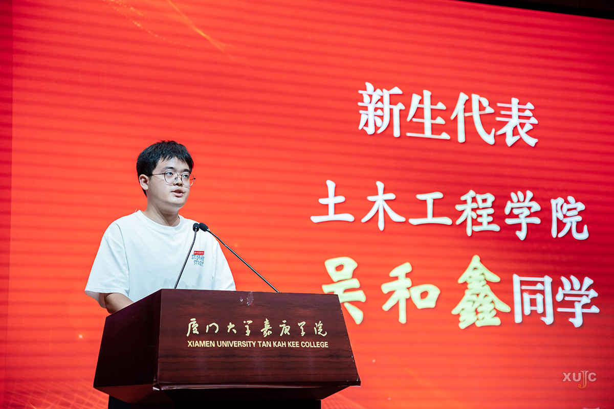“選擇嘉庚學(xué)院,是因?yàn)樗且蛔蓍_(kāi)放的‘夢(mèng)想橋梁’。”土木工程學(xué)院新生代表吳和鑫表達(dá)對(duì)“嘉”的喜愛(ài)與對(duì)未來(lái)的期待。站在新起點(diǎn),他希望自己成為三類人:一是“歸零”的學(xué)習(xí)者,永葆好奇;二是“融合”的實(shí)踐者,敢于跨界;三是“有溫度”的擔(dān)當(dāng)者,心懷家國(guó)。“從今天起,讓我們以‘嘉’人之名,互勉互勵(lì),共同成長(zhǎng)。”他勉勵(lì)大家認(rèn)真學(xué)習(xí)專業(yè)知識(shí)、鍛煉實(shí)踐能力,在“嘉園”書(shū)寫無(wú)悔青春。