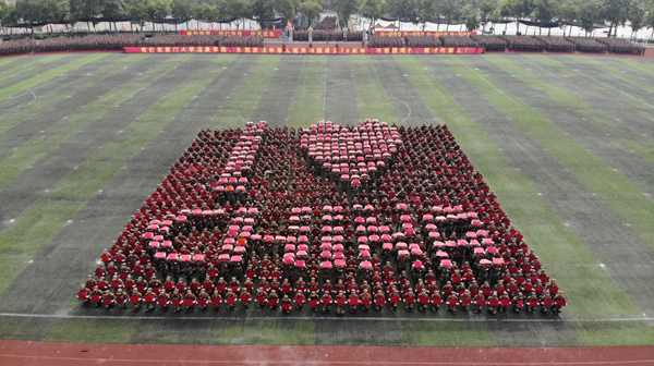 廈門網訊 (記者 沈偉彬 通訊員 嘉聞)9月14日,廈門大學嘉庚學院舉行軍訓結業(yè)典禮,900名2019級新生用身體激情表白中國。“70”“中國地圖”“I love China”…在激揚的音樂中,隊形不斷變化,炙熱的情話“響”徹云霄,點燃現(xiàn)場。