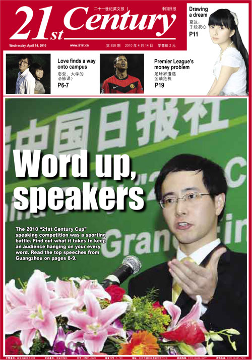 圖為中國(guó)日?qǐng)?bào)二十一世紀(jì)英文報(bào)2010年4月14日頭版