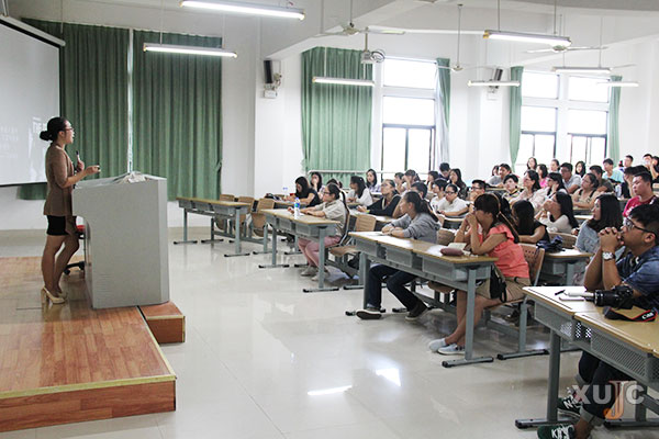 陳佳龍所說的“蓓蓓”就是人文與傳播學(xué)院的朱盈蓓老師。19日,朱盈蓓在主樓群2號(hào)樓為校友們講述了《尋找第二人生》。