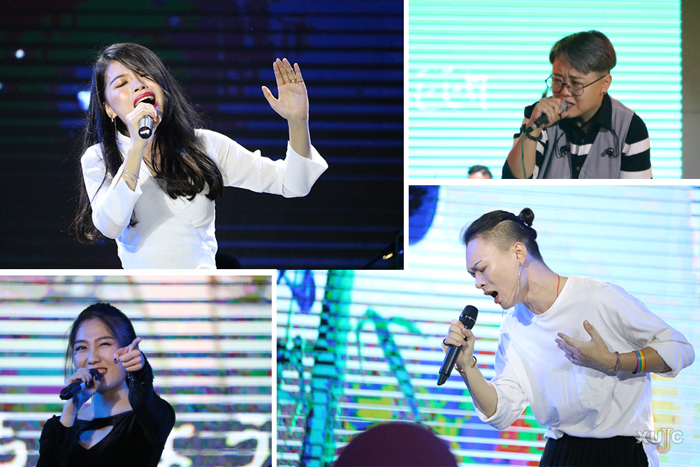 楊健帶來的《Uptown Funk》、王鐸霖與宋建霆對唱的《老男孩》、福州校友會代表的《鳳凰花開的路口》、宋思怡/肖勇的《她來聽我的演唱會》,王國濤、曾慶浩、李鴻羽、馬驍的RAP《Back to the TKKC》,引來了臺下的一陣陣熱烈掌聲。在“終有時”篇章中,演員們成功喚起了那些屬于“嘉”人的青春記憶。