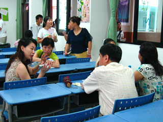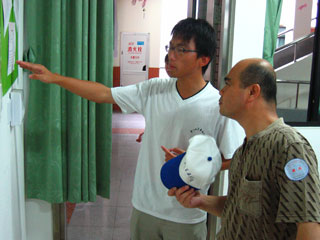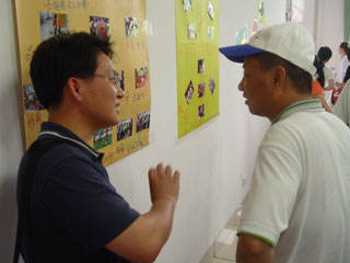 日語系主任余逸文老師與家長交流 | 學(xué)生志愿者耐心解說 |