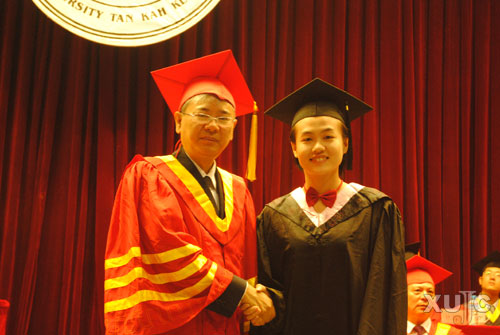 畢業(yè)生們一一走上臺(tái),向授業(yè)恩師們深情鞠躬。再由王瑞芳院長(zhǎng)悉心地為畢業(yè)生撥正流蘇,場(chǎng)面莊嚴(yán)中帶著濃濃的溫情。一些畢業(yè)生更不放過(guò)跟院長(zhǎng)親密接觸的機(jī)會(huì),與院長(zhǎng)來(lái)一個(gè)親密擁抱。