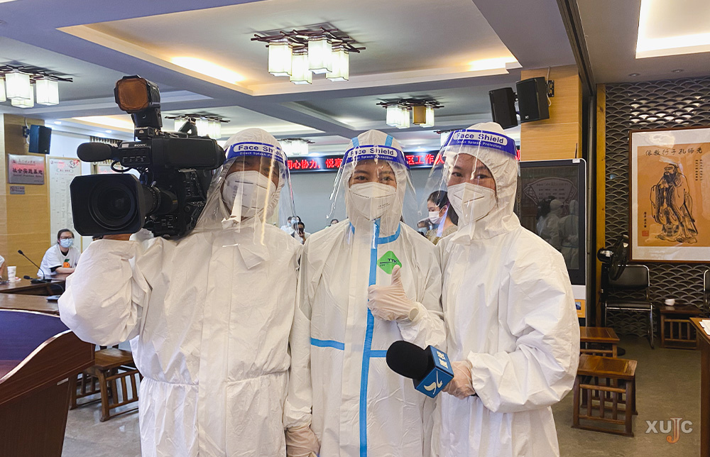 9月13日,廈門發(fā)布發(fā)現(xiàn)一名中高風(fēng)險地區(qū)輸入性關(guān)聯(lián)病例的消息。那一天,剛好是謝從冰的生日。這個別樣的生日讓她印象深刻。“原本計劃和朋友一起吃飯,后來取消了,但還是吃到了同事提前訂好的蛋糕。”當(dāng)天,她負責(zé)廈門市疫情防控情況新聞發(fā)布會的報道工作。按要求,她需要在晚上九點播出的廈門電視臺“特區(qū)新聞廣場”欄目發(fā)布相關(guān)信息。這是一項十分考驗隨機應(yīng)變能力的任務(wù)。當(dāng)晚8點32分新聞發(fā)布會正式開始。時間緊迫,當(dāng)發(fā)布會結(jié)束后,最后留給她剪輯視頻的時間只剩下13分鐘。她只能爭分奪秒,當(dāng)看到剪輯的新聞視頻順利發(fā)布時,才松了一口氣。