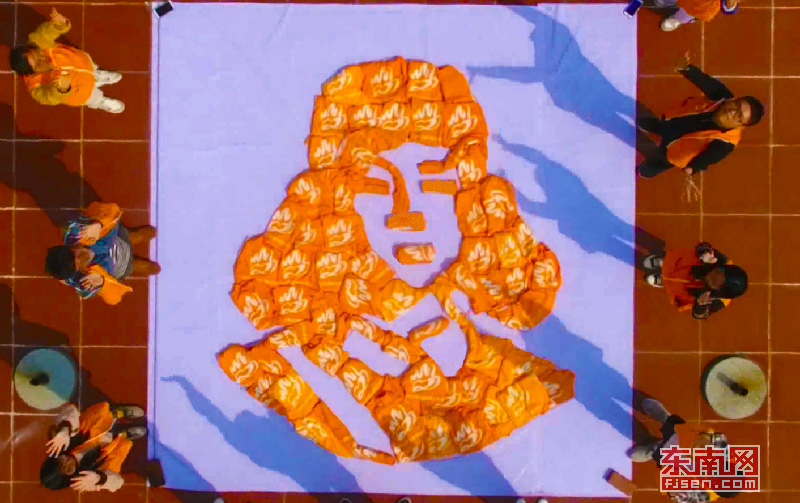 據(jù)悉,這是該校青年志愿指導(dǎo)中心組織20位志愿者代表用200件橙色馬甲拼接而成的,整個頭像圖案占地約10平方米。