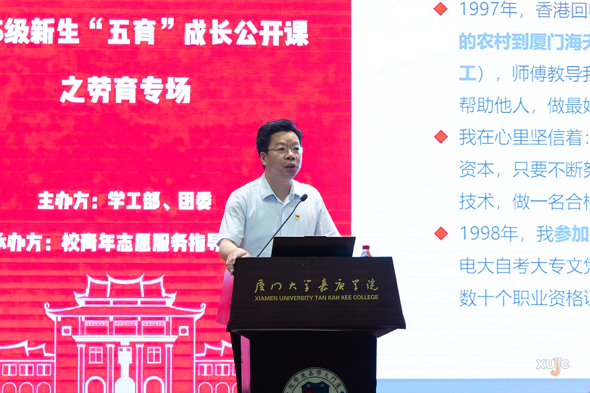 楊云良在開場致辭中指出,黨的十八大以來,習(xí)近平總書記對勞動(dòng)教育高度重視。他回顧校主陳嘉庚先生的精神傳承,闡述勞動(dòng)與勞動(dòng)模范的價(jià)值,并向2025級新生介紹職業(yè)體驗(yàn)、社區(qū)掛職、“三下鄉(xiāng)”社會實(shí)踐等我校勞動(dòng)教育品牌項(xiàng)目,鼓勵(lì)新生向勞模學(xué)習(xí),將勞動(dòng)精神融入學(xué)習(xí)與生活,成長為社會主義建設(shè)者和接班人。