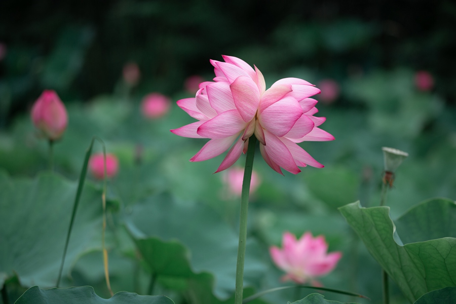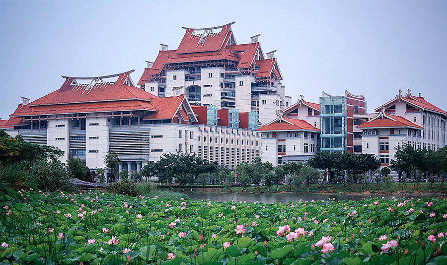 成片荷花與嘉庚特色建筑相映,美不勝收。朱鮮艷攝