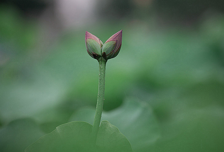 一株即將盛放的并蒂蓮。朱鮮艷攝