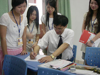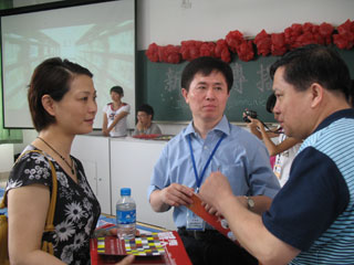 新聞傳播系的展廳設(shè)在一號(hào)樓第四層。新聞傳播系的展廳布置得新穎別致,學(xué)生的攝影作品、剪輯的宣傳片更是提升了溫馨的氣氛。8:30,家長(zhǎng)和考生陸續(xù)前來(lái),場(chǎng)面逐漸活躍起來(lái)。新聞傳播系精心準(zhǔn)備的宣傳冊(cè)與系刊很好地幫助來(lái)訪者了解了學(xué)院和新聞傳播系的概況。6月18日是父親節(jié),每位前來(lái)參觀的父親都在事先準(zhǔn)備的筆記本上留下了美好的祝愿。其后,志愿者們還熱情主動(dòng)地向家長(zhǎng)、學(xué)生們介紹了學(xué)院的辦學(xué)特色和新聞傳播系的主要優(yōu)勢(shì)。家長(zhǎng)們還與系主任朱健強(qiáng)和各個(gè)專業(yè)老師進(jìn)行了更加深入的探討,從家長(zhǎng)對(duì)孩子的期望和孩子自身對(duì)某些專業(yè)的興趣角度出發(fā),系主任和專任老師們?yōu)樗麄兲峁┝耸謱氋F的意見(jiàn)和建議。此外,來(lái)訪者也咨詢了不少關(guān)于師資、辦學(xué)理念以及我院招生錄取政策等的問(wèn)題,系主任和專任教師一一解答,解開(kāi)了家長(zhǎng)及考生的疑問(wèn)。期間,副院長(zhǎng)戴一峰也親臨現(xiàn)場(chǎng)參觀,并幽默地稱新聞傳播系的展廳布置可以獲“最佳創(chuàng)意獎(jiǎng)”。