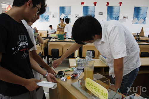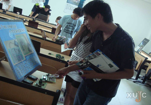 電子工程系展廳內(nèi)擺放的單片機、嵌入式實驗箱等儀器設(shè)備以及學(xué)生獲獎作品等吸引了不少來賓駐足觀看。正是通過這樣的全方位展示,電子工程系學(xué)生很好地呈現(xiàn)出了厚實的理論基礎(chǔ)和靈活的動手實踐能力。據(jù)電子工程系行政秘書兼輔導(dǎo)員劉萍老師介紹,今年實習(xí)基地和理工大樓實驗基地增多,學(xué)生實踐能力也在不斷地提高,這從逐漸增多的獲獎作品就能看出這一點。