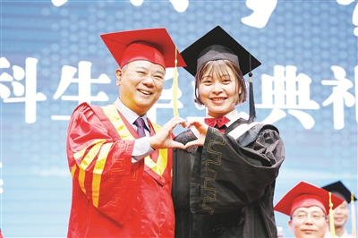 堅持著每一場站立一個多小時,完成與每一位畢業(yè)生的執(zhí)手握別。
