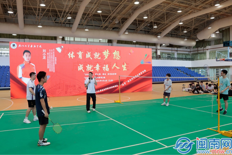 閩南網(wǎng)9月9日訊(通訊員 王儀彤 陳心怡 胡倩 閩南網(wǎng)記者 柯嘉進(jìn) 文/圖)“體育讓我增強(qiáng)體質(zhì),超越自我,最終變成強(qiáng)者。”近日,廈門大學(xué)嘉庚學(xué)院風(fēng)雨球館二樓座無(wú)虛席,2025級(jí)新生“五育”成長(zhǎng)公開(kāi)課體育專場(chǎng)在此精彩開(kāi)講。原國(guó)家羽毛球隊(duì)隊(duì)員、2013年蘇迪曼杯混合團(tuán)體錦標(biāo)賽冠軍劉小龍為新生上了一堂“羽”眾不同的體育課。