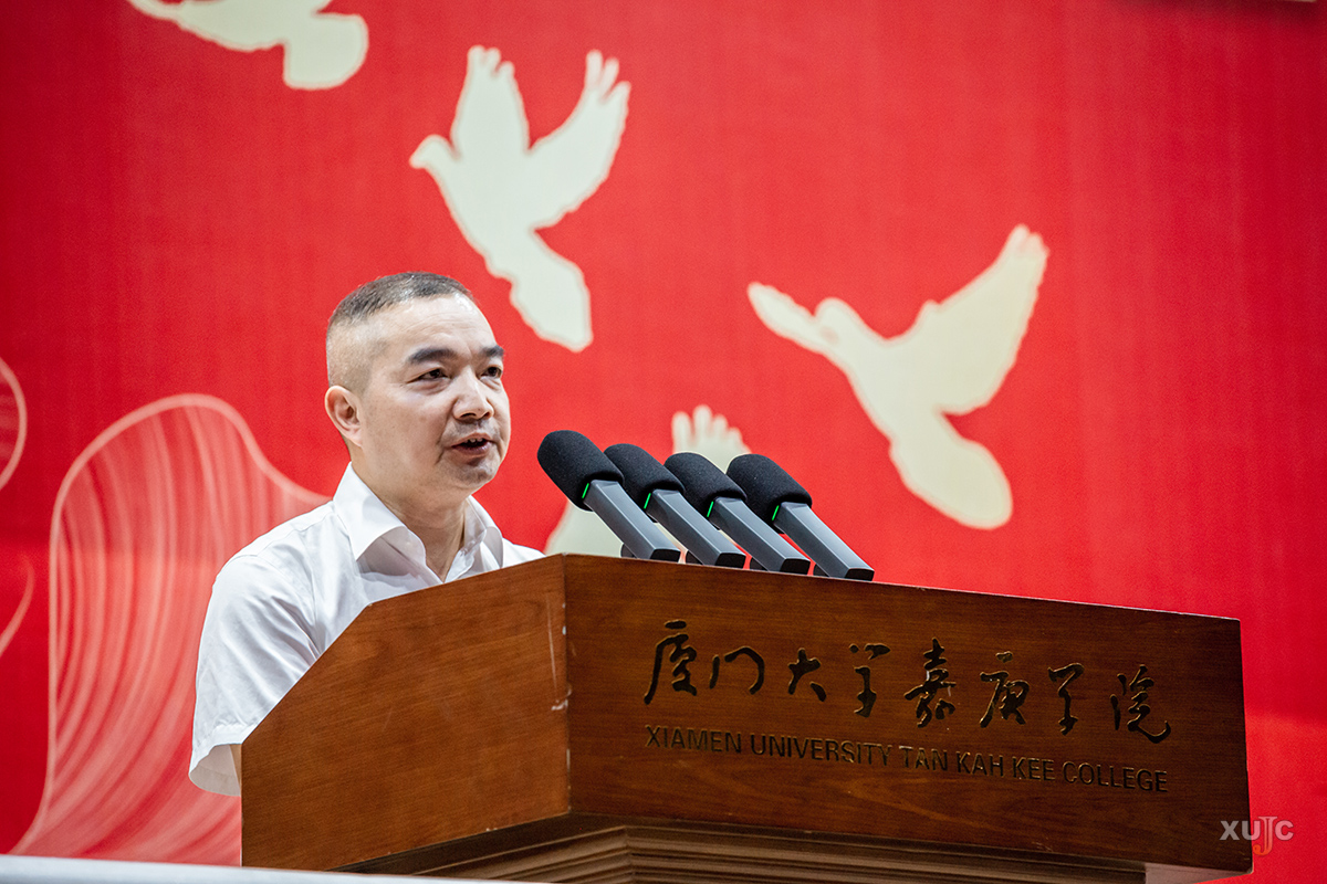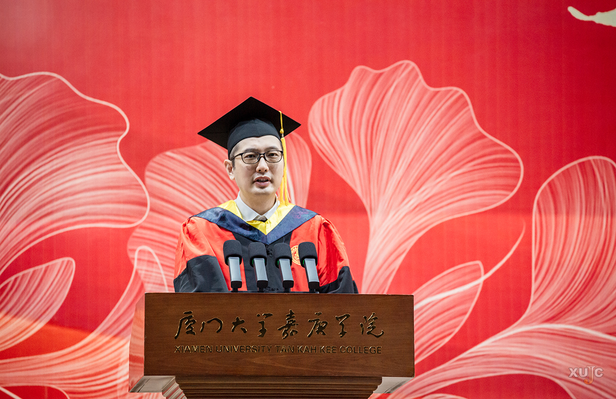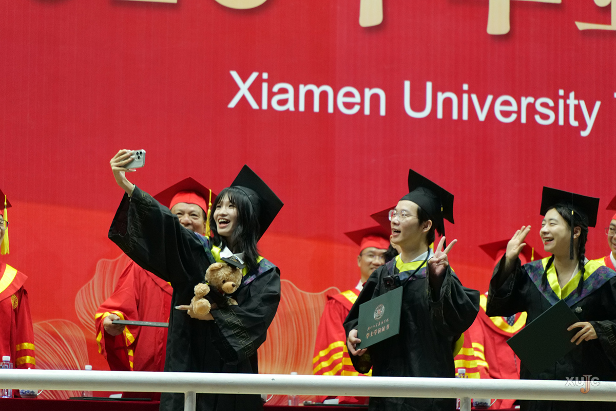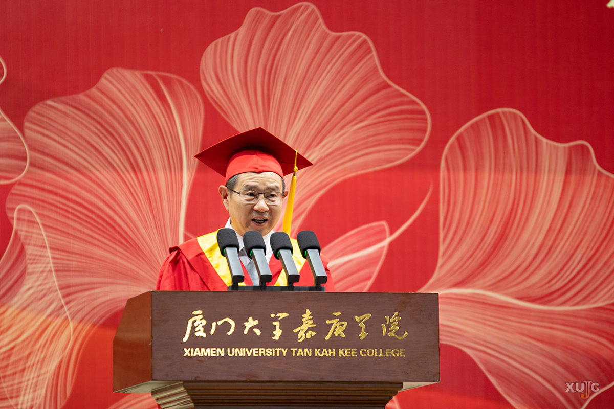 這屆畢業(yè)生大多數(shù)與嘉庚學(xué)院同齡。王瑞芳將當(dāng)年18歲的嘉庚學(xué)院與18歲學(xué)子的那場(chǎng)相遇,稱為“彼此最珍貴的成人禮”。他深情回顧了學(xué)子們?cè)?ldquo;嘉園”的求學(xué)時(shí)光,對(duì)他們?cè)谖幕瘋鞒?、鄉(xiāng)村振興、科創(chuàng)競(jìng)賽等方面的突出表現(xiàn)給予了高度肯定。