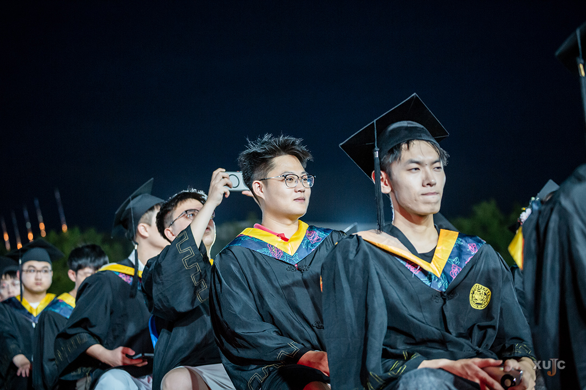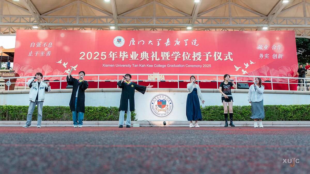 在這個(gè)夏夜,天南海北的“嘉”人、愛(ài)“嘉”之人云端相聚,共同祝福即將遠(yuǎn)航的2025屆畢業(yè)生??鐚I(yè)被英國(guó)拉夫堡大學(xué)(Loughborough University)錄取的設(shè)計(jì)與創(chuàng)意學(xué)院畢業(yè)生閆澤已經(jīng)遠(yuǎn)赴英國(guó),為新學(xué)年做準(zhǔn)備,盡管中英之間隔著7小時(shí)時(shí)差,但也不妨礙閆澤在當(dāng)?shù)貢r(shí)間下午1點(diǎn)打開(kāi)手機(jī),“參加”了自己的本科畢業(yè)典禮。值得一提的是,閆澤的舍友上臺(tái)接受校領(lǐng)導(dǎo)為之援正流蘇時(shí),還特意打開(kāi)與他的視頻對(duì)話,并稱之為“把遠(yuǎn)在英國(guó)的畢業(yè)生閆澤‘帶’上臺(tái)了!”此舉讓閆澤很是感動(dòng),“這就是美好的嘉庚學(xué)院,美好的‘嘉’人!”