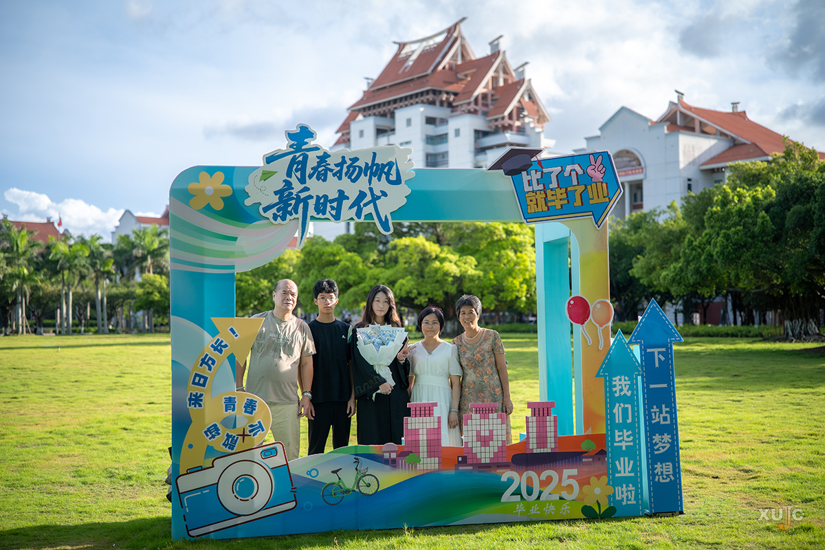 “我們第一次來(lái)女兒學(xué)習(xí)的地方。學(xué)校很大很漂亮,畢業(yè)典禮很隆重。”設(shè)計(jì)與創(chuàng)意學(xué)院畢業(yè)生陳昱菁的父母在感嘆學(xué)校風(fēng)景優(yōu)美的同時(shí),也切身體會(huì)到學(xué)校的用心安排,“嘉庚學(xué)院‘以學(xué)生為中心’,讓學(xué)生得到很好的成長(zhǎng)。”在優(yōu)秀畢業(yè)生展板處,他們還和女兒的照片合了影。