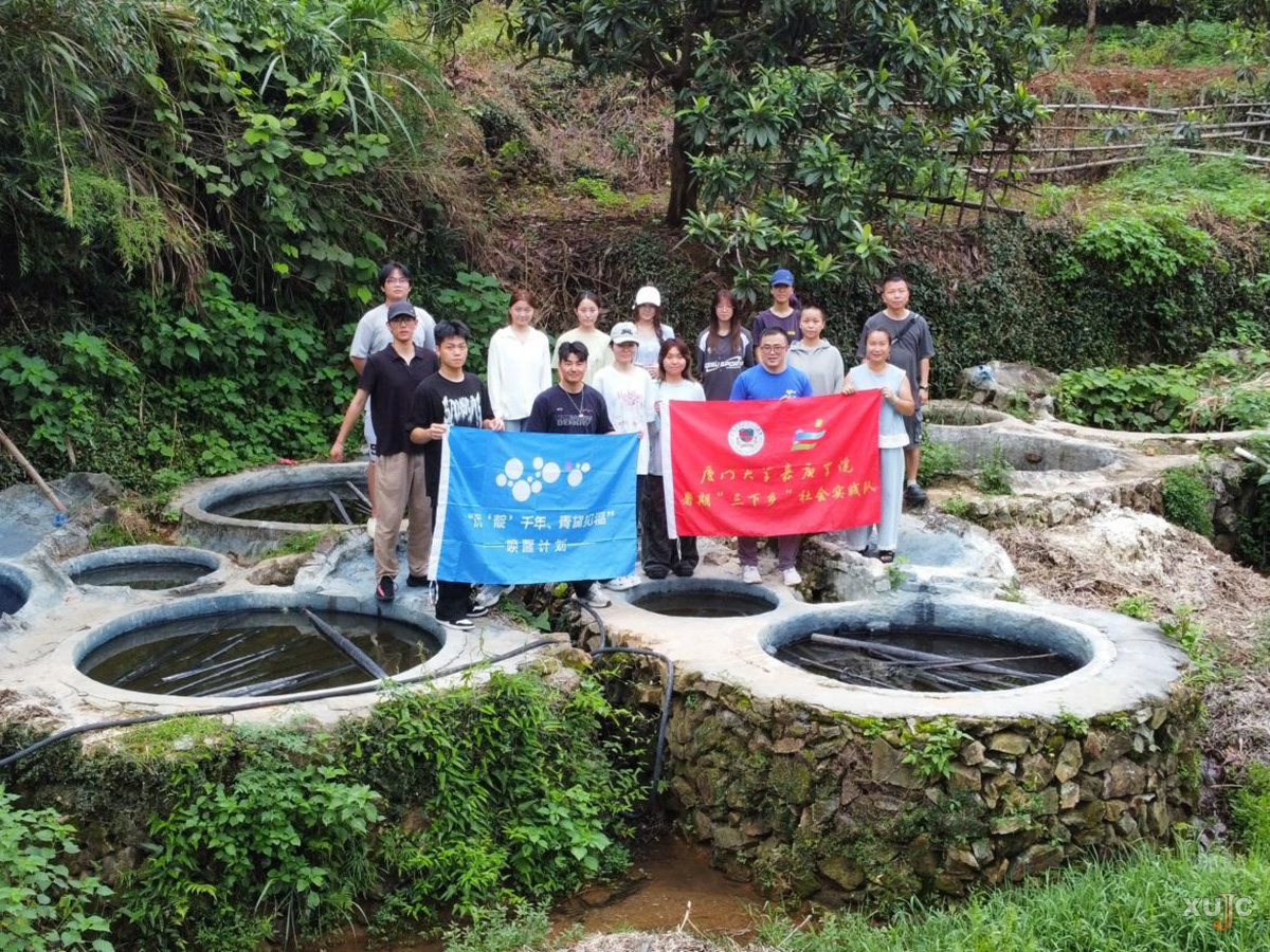 仙游青黛的傳統(tǒng)制作工藝傳承千年,主要包括割藍草、浸泡、過濾、撈渣、加灰(石灰)、打藍、過濾、取靛七個制作步驟。我校“沉‘靛’千年、青黛見福”喚醒計劃團隊多次深入仙游縣書峰鄉(xiāng)四黃村的青黛種植田與藍靛池,通過詳盡的田野調查與深入研究,全力協(xié)助非遺傳承人黃碧紅向莆田市文化和旅游局申報,并成功入選莆田市第四批市級非物質文化遺產傳承基地。這一成果為古老青黛技藝的守護與煥新筑牢支撐。