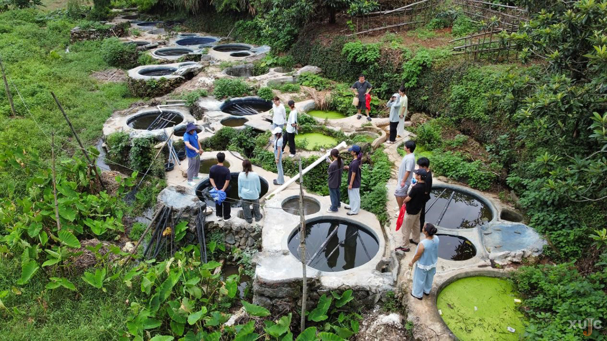 在今年暑期的實踐中,師生一行深入田間地頭、村落工坊開展靛池分布情況及現(xiàn)狀調查,俯身觀察百年夯土靛池、追溯歷史印記。經(jīng)過初步的實地勘測,他們發(fā)現(xiàn),書峰鄉(xiāng)四黃村12個自然村現(xiàn)存大小靛池群30余處,至少涵蓋240組(522口)靛池,最大群組含137口,其中51組處于閑置荒廢狀態(tài),且荒廢規(guī)模正持續(xù)擴大,亟需采取搶救性保護措施。