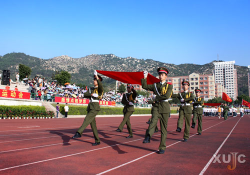 伴隨著雄壯的運動員進行曲,國旗、院旗護衛(wèi)隊踏著矯健的步伐走過主席臺。各院系方隊緊隨其后,以多樣的表演方式展現(xiàn)了各個系別的學科特色和精神風貌。動感十足的物流管理系方陣帶來了精彩的自行車、籃球、網球、輪滑等體育項目的精彩表演,色彩斑斕的奧運五環(huán)寓意著“生命不息,運動不止”的奧林匹克精神。法學院方隊隊員們放飛手中氣球,頃刻間,五顏六色的氣球在空中似乎變成騰空的彩帶,預示著法學學子的殷切祝福與期望。