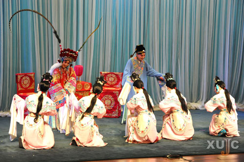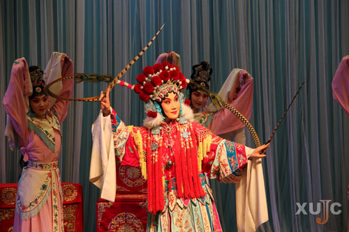 4月3日晚,主樓群三號樓大報(bào)告廳內(nèi)鼓點(diǎn)鏗鏘,余音繞梁,來自國家京劇院的戲曲藝術(shù)家們?yōu)閺B門大學(xué)漳州校區(qū)的同學(xué)們帶來了一場美輪美奐的視聽盛宴。