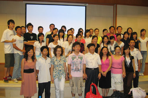 英語系主任雷天放教授、紀玉華教授、英語系專職教師和兼職教師、歷任及現(xiàn)任行政秘書兼輔導員老師與激情滿懷的07屆畢業(yè)生一起共譜別曲。