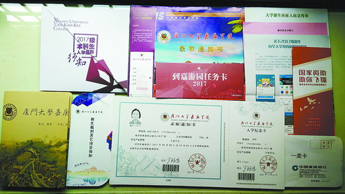 隨著錄取通知書(shū)一起到來(lái)的還有學(xué)生入學(xué)報(bào)到須知、高等學(xué)校資助政策、嘉庚學(xué)院校歷、大學(xué)生涯時(shí)間規(guī)劃、一份頗費(fèi)心血的校園手繪地圖,以及獨(dú)具創(chuàng)意的“到嘉游園任務(wù)卡”等等。捧在手上沉甸甸,“這可是理想的重量。”陳婧雯嬉戲道。