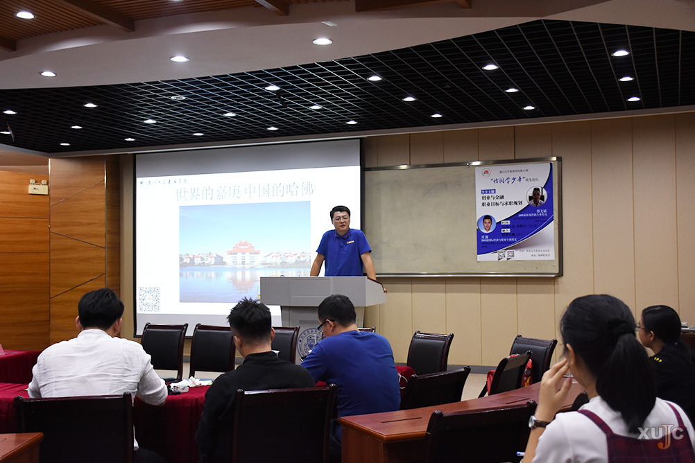 分享中,鄭文斌介紹了“生存型創(chuàng)業(yè)者”“主動型創(chuàng)業(yè)者”“創(chuàng)新創(chuàng)意型創(chuàng)業(yè)者”等三種國內(nèi)創(chuàng)業(yè)者的類型。他認(rèn)為,大學(xué)生創(chuàng)業(yè)切忌盲目創(chuàng)業(yè),應(yīng)明確目標(biāo),根據(jù)自身條件選定合適的項目和地理位置,尋找適合的資金來源,并對企業(yè)的未來有明確的規(guī)劃。最后,他與大家交流了“金融”的含義,并鼓勵大家多了解不同的金融產(chǎn)品,為將來的資產(chǎn)管理配置打好基礎(chǔ)。