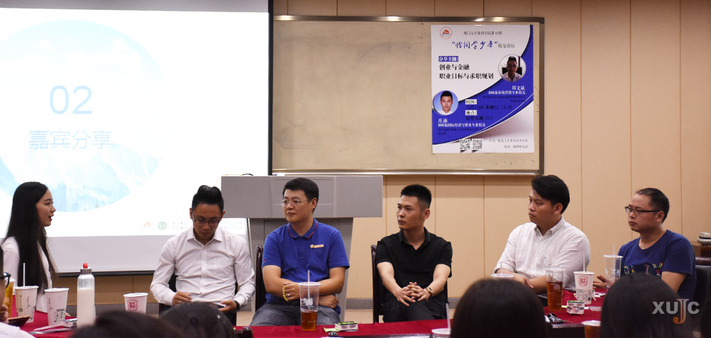 校友工作委員會辦公室主任王協(xié)和秘書楊旭、廈門校友會常務(wù)副理事長張舸、廈門校友會副理事長兼秘書長林嵐嵐、深圳校友會副理事長唐彪、福州校友會秘書長林敦欽也來到論壇現(xiàn)場,參與分享。