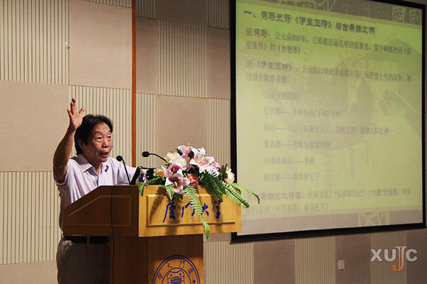 9月23日,朱水涌在主樓群3號樓小報告廳為我院學生進行了一場題為《文學經(jīng)典與人類文明》的講座,他重點講解了《伊利亞特》和《紅樓夢》兩部經(jīng)典著作,其風趣幽默的語言時不時喚起現(xiàn)場陣陣的掌聲和笑聲。