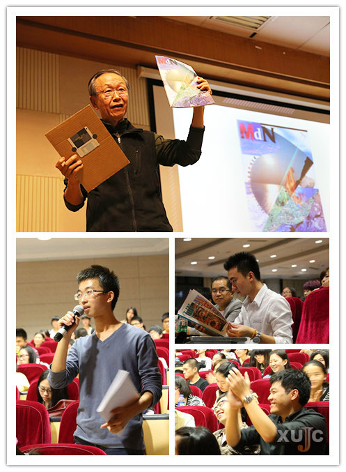 本場講座的主題是《什么技術改變了媒體的傳播方式》,已經(jīng)70多歲的Laurence NG用親身經(jīng)歷告訴大家技術對媒體傳播方式的影響。Laurence NG表示,收音機、電視機、蘋果的激光打印機和PowerBook等技術革新,讓媒體的傳播方式慢慢地“換裝”。“比如傳統(tǒng)的紙板雜志不能呈現(xiàn)媒體技術動態(tài)效果,CD碟片的出現(xiàn)便補充了這一傳統(tǒng)傳播缺陷。”Laurence NG用自己創(chuàng)立《IdN》雜志的例子向同學們介紹新技術對媒體的影響。他精心準備的PPT和視頻讓同學們對平面設計和媒體傳播創(chuàng)新方面有了全新的認識。