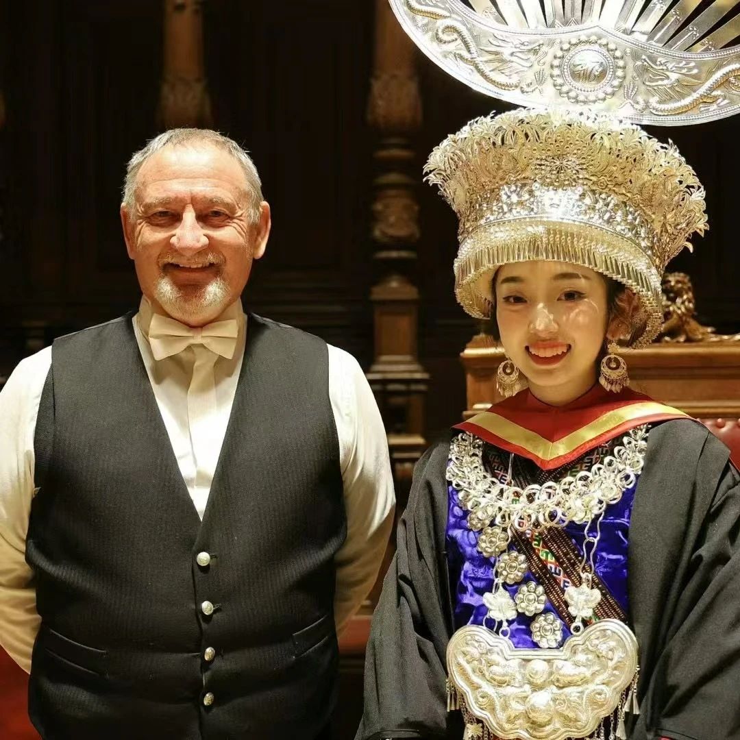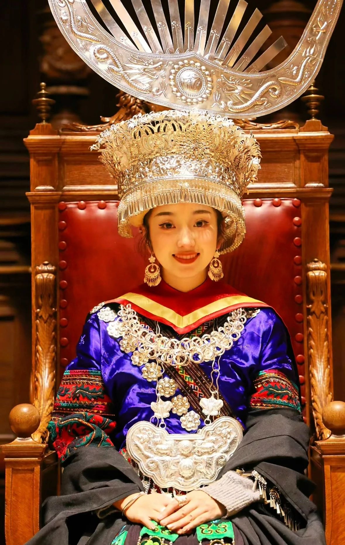 在英國愛丁堡大學(xué)的畢業(yè)典禮上,貴州女孩身穿苗族盛裝出席,現(xiàn)場邀請教授跳家鄉(xiāng)的民族舞,落落大方、自信明媚向世界展示中國的傳統(tǒng)文化魅力,驚艷全場。