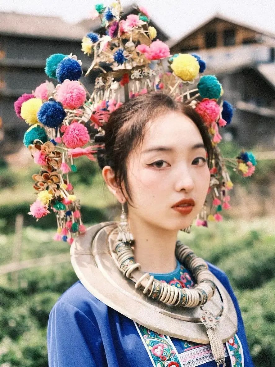 這個(gè)苗族女孩名叫余天羽,來自貴州省黔東南州雷山縣,是一個(gè)地地道道的苗族女孩。