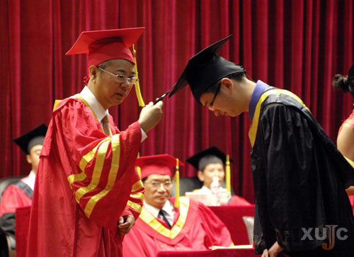 6月29日上午,主樓群三號樓大報(bào)告廳內(nèi)坐滿了藝術(shù)設(shè)計(jì)系、音樂系、電子工程系、計(jì)算機(jī)科學(xué)與技術(shù)系的09屆畢業(yè)生,他們正等待著授予學(xué)位、援正流蘇的激動一刻。